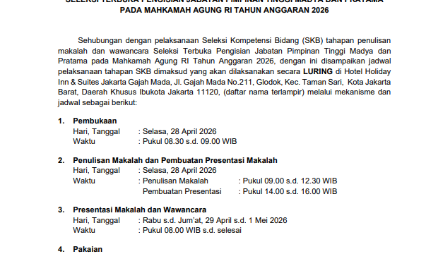JAKARTA, Supersemar News - Sekretaris Mahkamah Agung (MA) bertindak selaku Ketua Panitia Seleksi...