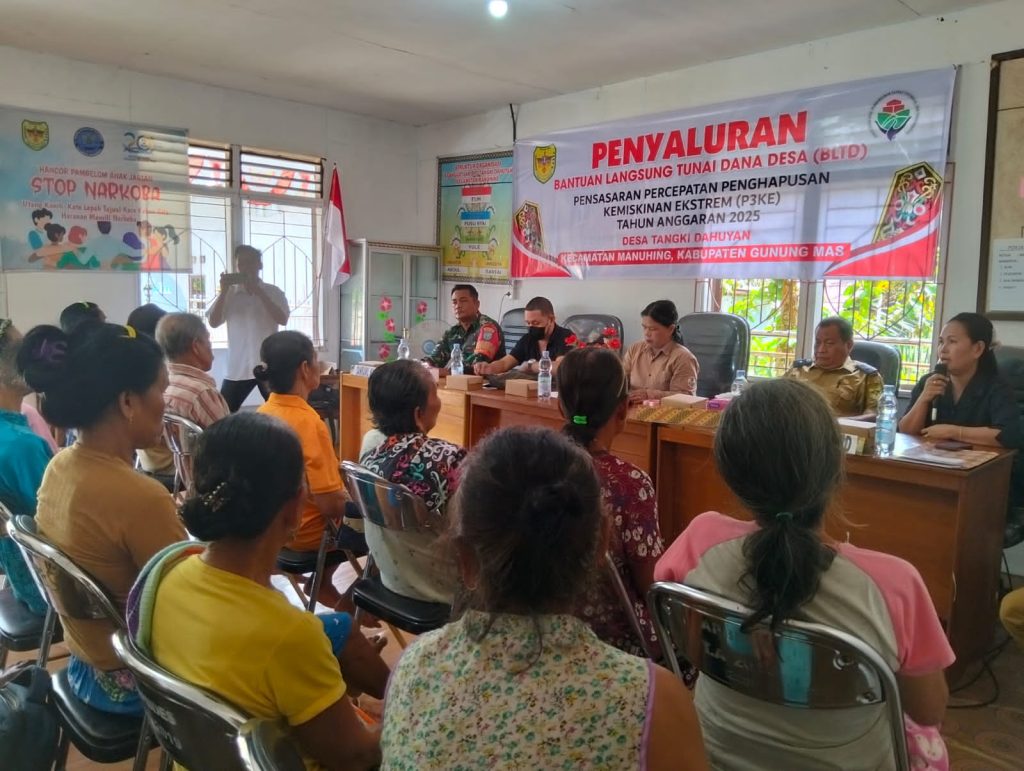Kuala Kurun, Supersemar News – Babinsa Koramil 1016-04/Manuhing Kodim 1016 Palangka Raya Sertu Yakob melaksanakan pendampingan penyaluran Bantuan Langsung Tunai Dana Desa (BLT-DD) Triwulan I dan II Tahun 2025, dilaksanakan di Kantor Desa Tangki Dahuyan, Kecamatan Manuhing Raya, Kabupaten Gunung Mas, Selasa (06/05/2025).