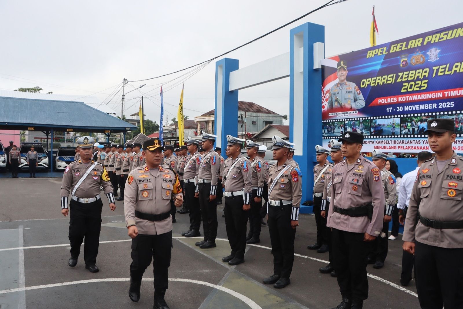 SAMPIT, Supersemar news – Polres Kotawaringin Timur (Kotim) menggelar apel gelar pasukan Operasi Zebra Telabang 2025 di lapangan apel Satlantas Polres Kotim Jl. Yos Sudarso Sampit, Senin (17/11/2025).