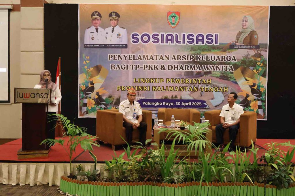PALANGKA RAYA, SUPERSEMAR NEWS – Dinas Perpustakaan dan Arsip (Dispursip) Provinsi Kalimantan Tengah menggelar Sosialisasi Penyelamatan Arsip Keluarga yang dihadiri oleh Tim Penggerak Pemberdayaan dan Kesejahteraan Keluarga (TP-PKK) serta Dharma Wanita Persatuan (DWP) Provinsi Kalimantan Tengah, bertempat di Hotel Luwansa Palangka Raya, Rabu (30/4/2025).