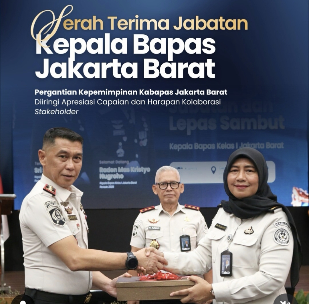 SupersemarNews, JAKARTA — Balai Pemasyarakatan (Bapas) Kelas I Jakarta Barat menggelar serah terima jabatan (sertijab) dan lepas sambut Kepala Bapas dari Sri Susilarti kepada Raden Mas Kristyo Nugroho, Kamis (23/4/2026). Kegiatan berlangsung di Aula Pusdiklat Pajak Kemanggisan, Jakarta Barat.