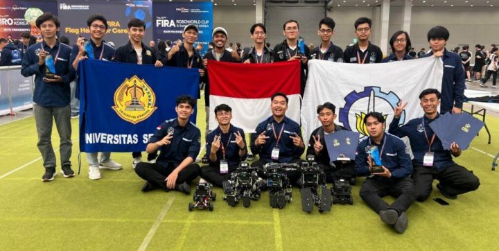 Tim Robotika Indonesia dari Institut Teknologi Sepuluh Nopember (ITS) meraih juara dunia dalam ajang FIRA Roboworld Cup 2025 di Korea Selatan, menampilkan inovasi robot otonom sebagai bukti kekuatan teknologi dan SDM unggul menuju Indonesia Emas 2045.