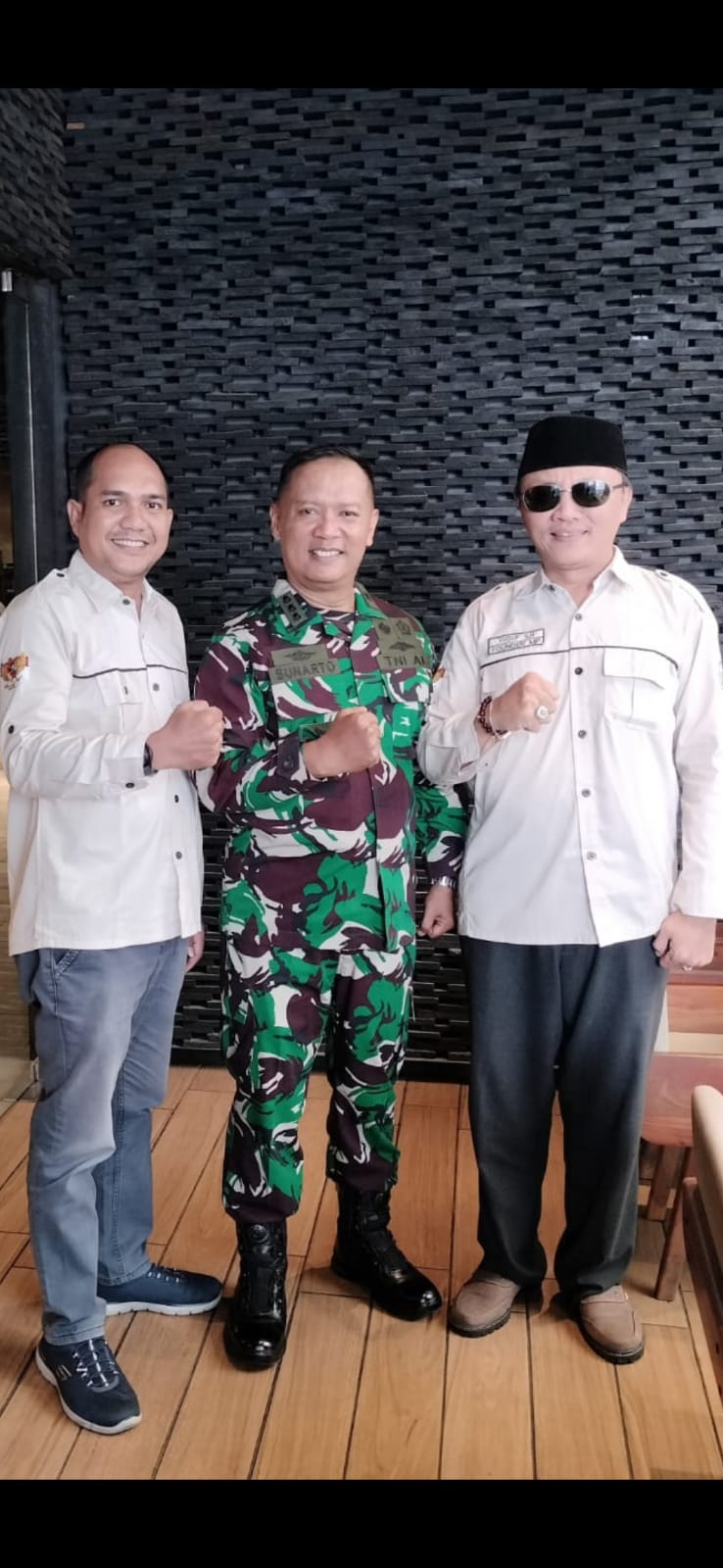 Foto dari kiri Jhansen Mangiring Marpaung(Dewan Pengawas Supersemar Law Firm dan Supersemar News), Kolonel Laut (KH) Sunarto, S.T., M.A.P dan Yusuf SH (Dewan Pendiri Supersemar News)