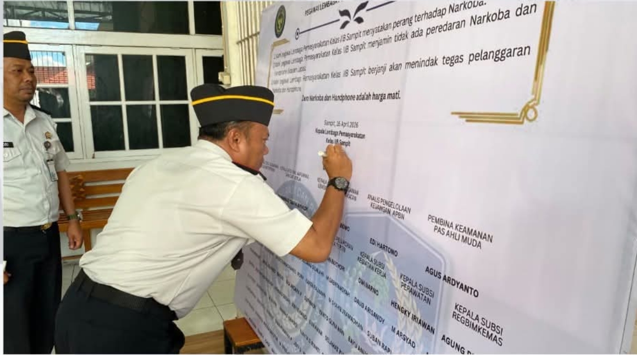 Sebagai bentuk penguatan komitmen, dilakukan pula penandatanganan ikrar oleh Kepala Lapas Sampit beserta seluruh jajaran petugas. Penandatanganan ini menjadi simbol tanggung jawab bersama dalam mewujudkan lingkungan pemasyarakatan yang bersih dari barang terlarang.