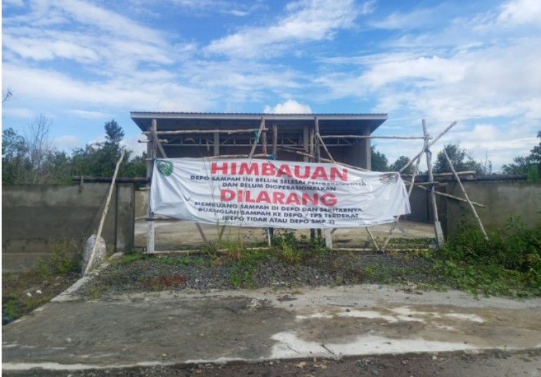 ” Depo sampah ini belum selesai pengerjaannya dan belum di operasikan, Di larang Membuang sampah di depo sampah dan sekitarnya”