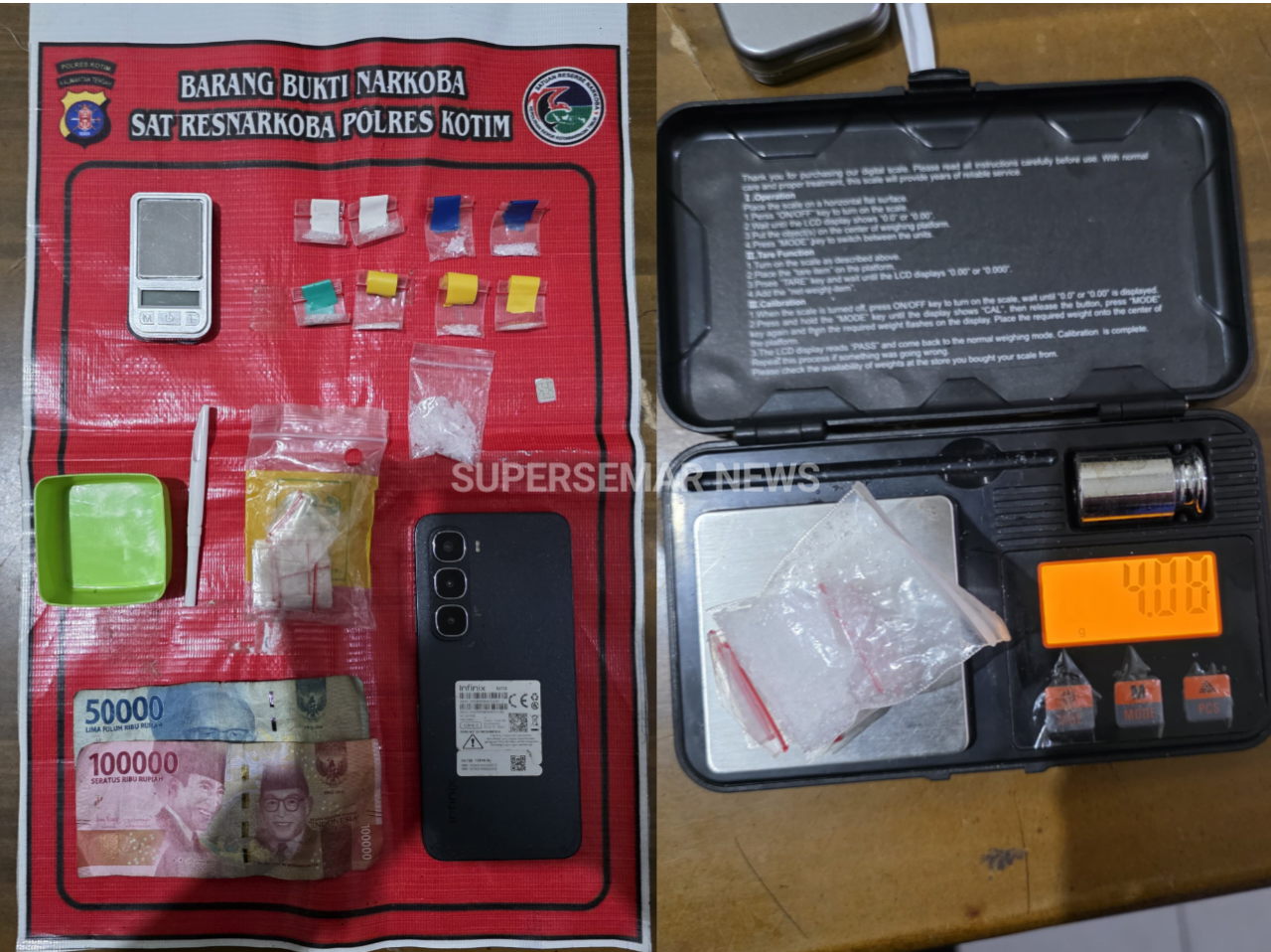 “Dari hasil penggeledahan, Satresnarkoba Kotim menemukan 9 bungkus plastik klip yang diduga berisi narkotika jenis sabu seberat 4,08 gram, uang tunai Rp150.000, dan satu buah timbangan digital,“ jelas AKP Edy, Kamis (9/4).