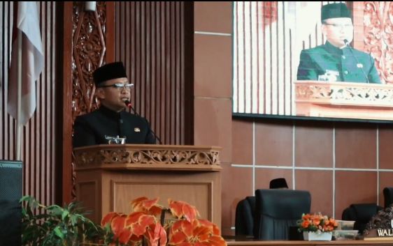 Wali Kota Depok menyampaikan program quick win dalam Rapat Paripurna Istimewa HUT ke-26 Kota Depok di Gedung DPRD, mengumumkan pembebasan PBB untuk NJOP di bawah Rp100 juta dan peluncuran Car Free Day.(foto tangkapan layar youtube pemkot Depok)