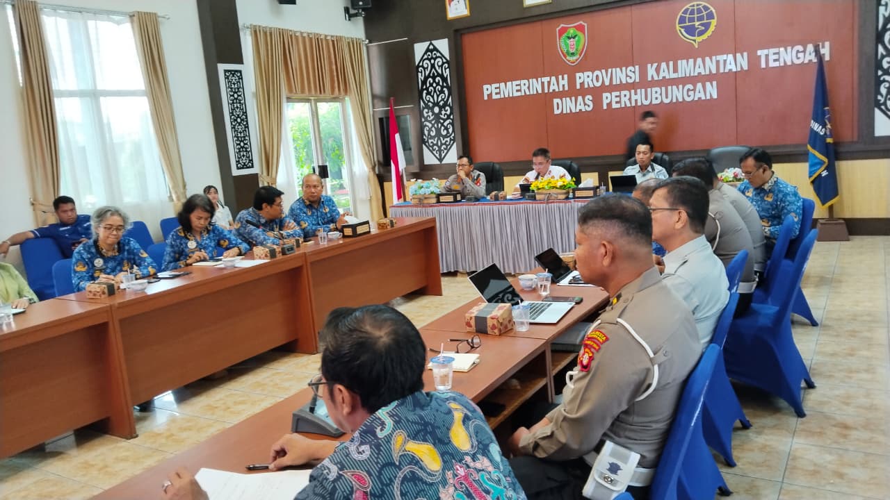 Rakor berlangsung di Aula Dinas Perhubungan Provinsi Kalteng, Jalan S. Parman, Kota Palangka Raya, Kalimantan Tengah, yang dihadiri oleh Kasatlantas, Kompol Egidio Sumilat bersama para perwira dan personel, Jumat (17/4/2026).