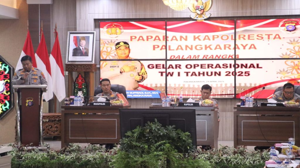 Palangka Raya, Supersemar News – Kapolresta Palangka Raya, Kombes Pol. Dedy Supriadi, S.I.K., M.H. mewakili kesatuannya untuk menghadiri Gelar Operasional (GO) yang diselenggarakan oleh Polda Kalteng untuk periode Triwulan I Tahun 2025, Selasa (29/4/2025) pagi.