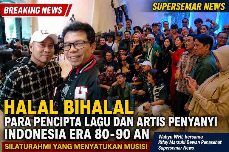 SUPERSEMAR NEWS – JAKARTA — Gelaran Halal Bihalal yang mempertemukan puluhan musisi membuktikan bahwa musik tetap menjadi jembatan persatuan yang kuat di tengah dinamika zaman. Acara yang diinisiasi oleh Wahyu WHL pencipta lagu legendaris Tenda Biru berlangsung hangat dan penuh makna di Hotel Golden Boutique Jakarta, pada 27 April 2026.