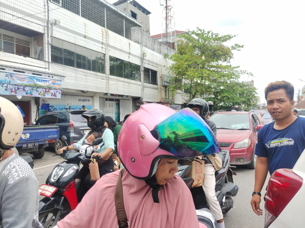 SAMPIT,Supersemar news, Menjelang Lebaran H- 6, arus lalu lintas di kawasan Pasar PPM Sampit, Kabupaten Kotawaringin Timur, tampak padat merayap Minggu (23/3/2025).