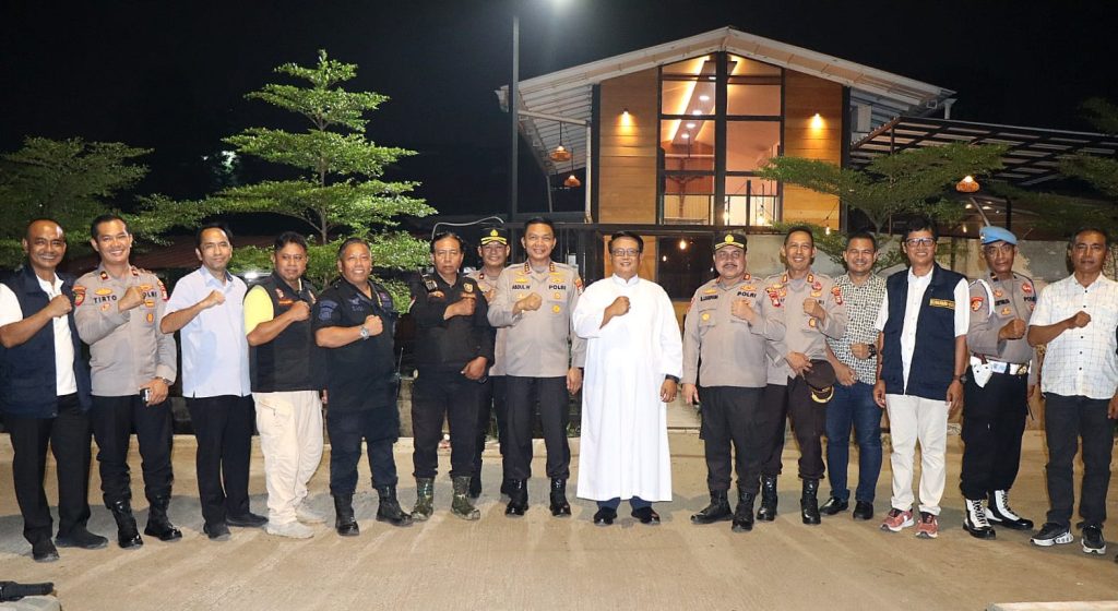Kapolres berbincang dengan jemaat dan pengurus. Ia menyampaikan pesan kamtibmas dan mengajak masyarakat menjaga toleransi dan ketertiban selama perayaan.