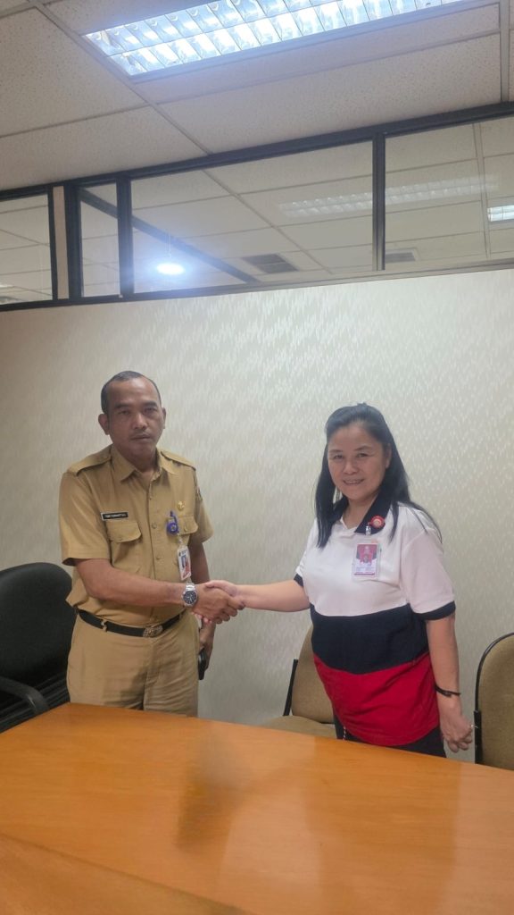 Ketua Kawan Stroke Indonesia (KaSI), Maria Rosa, berjabat tangan dengan Staf Walikota Jakarta Selatan sebagai simbol dukungan program kerja bagi penyintas stroke.