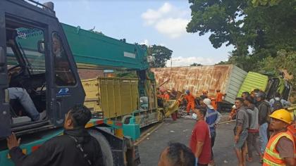 Akibatnya, truk kontainer berpelat nomor AB 8636 OG yang dikemudikan Tarza (57) warga Subang, Jawa Barat menyerempet truk pasir AD 8330 BJ lalu oleng. Kemudian truk tersebut tertabrak truk pasir tanpa pelat nomor yang ada di belakangnya.