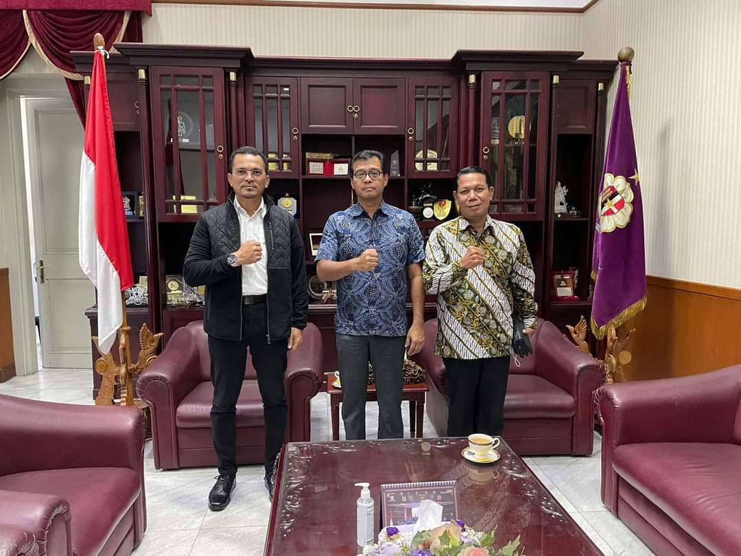 Nasruddin Tueka bersam Gubernur Lemhannas RI 2022-2023, Andi Widjajanto(tengah), saat diskusi strategis mengenai ketahanan nasional dan kedaulatan ruang udara Indonesia di Lembaga Ketahanan Nasional Republik Indonesia, menyoroti risiko geopolitik dan arah kebijakan pertahanan nasional
