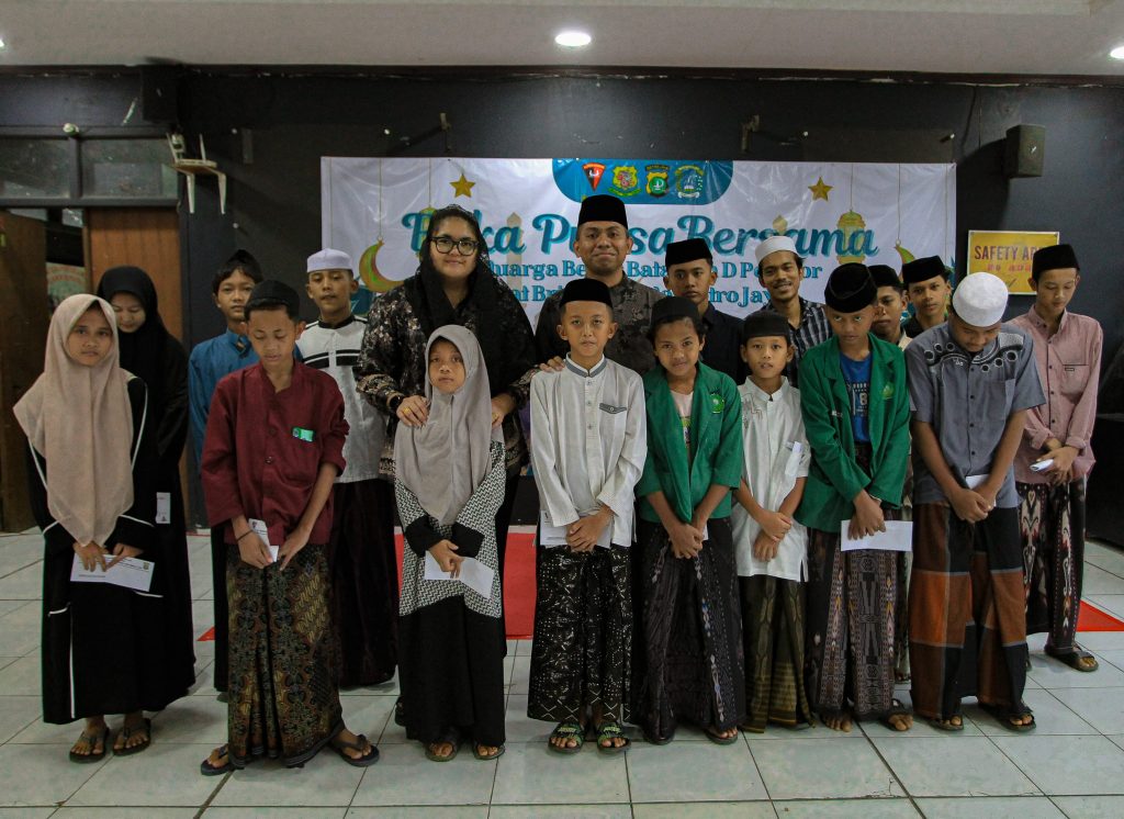 Kompol Anisa Nimerorkena Imapuly bersama anak yatim piatu dalam acara buka puasa bersama Batalyon D Pelopor Brimob Polda Metro Jaya, mempererat hubungan antara polisi dan masyarakat.