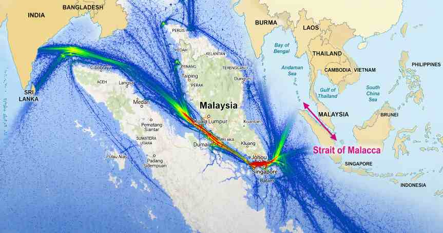 Selain itu, Selat Malaka juga menjadi jalur utama bagi negara-negara Asia Timur. China, Jepang, dan Korea Selatan sangat bergantung pada jalur ini untuk pasokan energi.