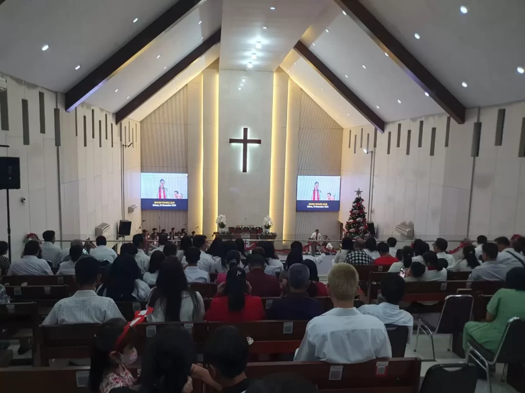 Misa Malam Natal di Gereja Zebaoth, Bogor Tengah, Kota Bogor, pada Selasa (24/12/2024), diikuti sekitar 6.000 jemaat dari 1.600 keluarga. Ketua Majelis Jemaat (KMJ) GPIB Zebaoth, Pendeta Margie Ririhena de Wanna, berharap Natal membawa kedamaian dan mempererat persaudaraan.