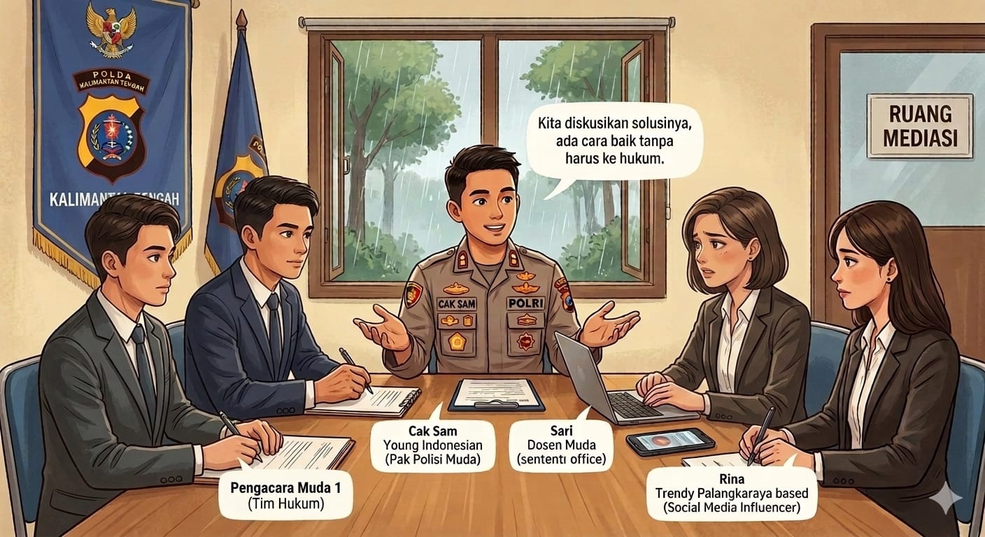 Ia (Cak Sam) kemudian mempertemukan B dan M bersama dua pengacara untuk dimediasi dan dilakukan pembinaan agar bijak bermedia sosial.