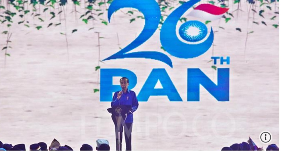 Presiden Joko Widodo memberikan arahan pada pembukaan Kongres ke-6 PAN di Jakarta, Jumat 23/08/2024. PAN menggelar kongres ke-6 pada 23-24 Agustus sekaligus menjadi perayaan puncak HUT Ke-26 PAN dengan mengusung tema besar Indonesia Terdepan.