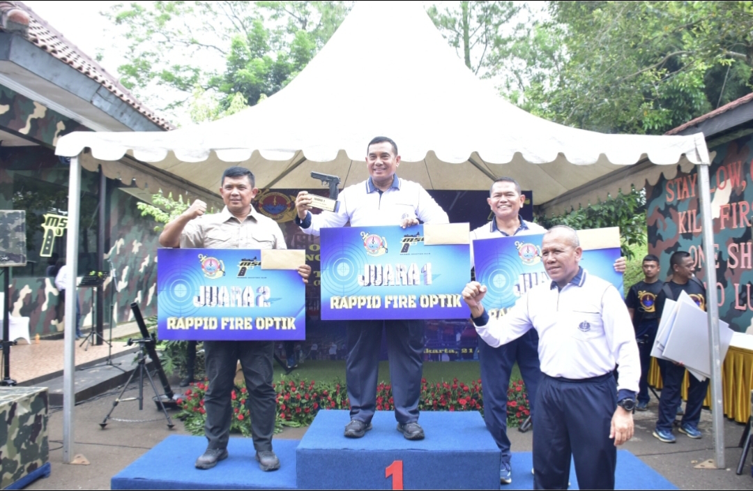 SupersemarNews, Dispen Kormar TNI Angkatan Laut (Jakarta). Panglima Korps Marinir (Pangkormar) Letnan Jenderal TNI Marinir Dr. Endi Supardi, S.E., M.M., M.Tr.Opsla., CHRMP., CRMP. meraih Juara 1 pada Lomba Menembak Pejabat Utama Marinir Wilayah Barat Tahun 2026 yang dilaksanakan di Lapangan Tembak Jusman Puger, Cilandak, Jakarta Selatan, Selasa (21/04/2026)