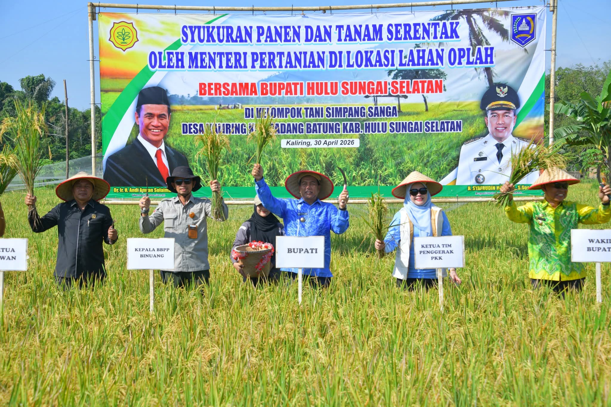HULU SUNGAI SELATAN, Supersemar News – Pemerintah Kabupaten (Pemkab) Hulu Sungai Selatan (HSS) menghadiri kegiatan syukuran panen dan tanam serentak yang dilaksanakan di Kelompok Tani Simpang Sanga, Desa Kaliring, Kecamatan Padang Batung, Kamis (30/04/2026).