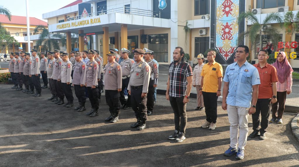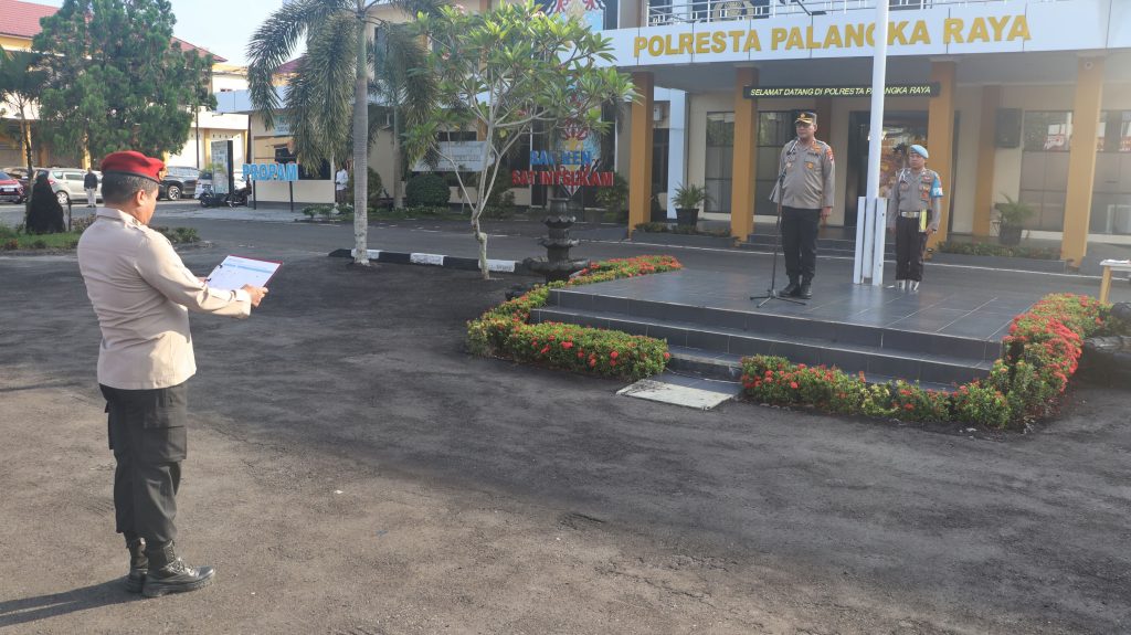 Apel pagi digelar di Mapolresta Palangka Raya, Jalan Tjilik Riwut Km. 3,5, Kota Palangka Raya, Kalimantan Tengah, yang dipimpin oleh Wakapolresta, AKBP Moch. Isharyadi Fitriawan, S.I.K., M.M. dan dihadiri oleh Para Pejabat Utama (PJU), Perwira beserta personel.