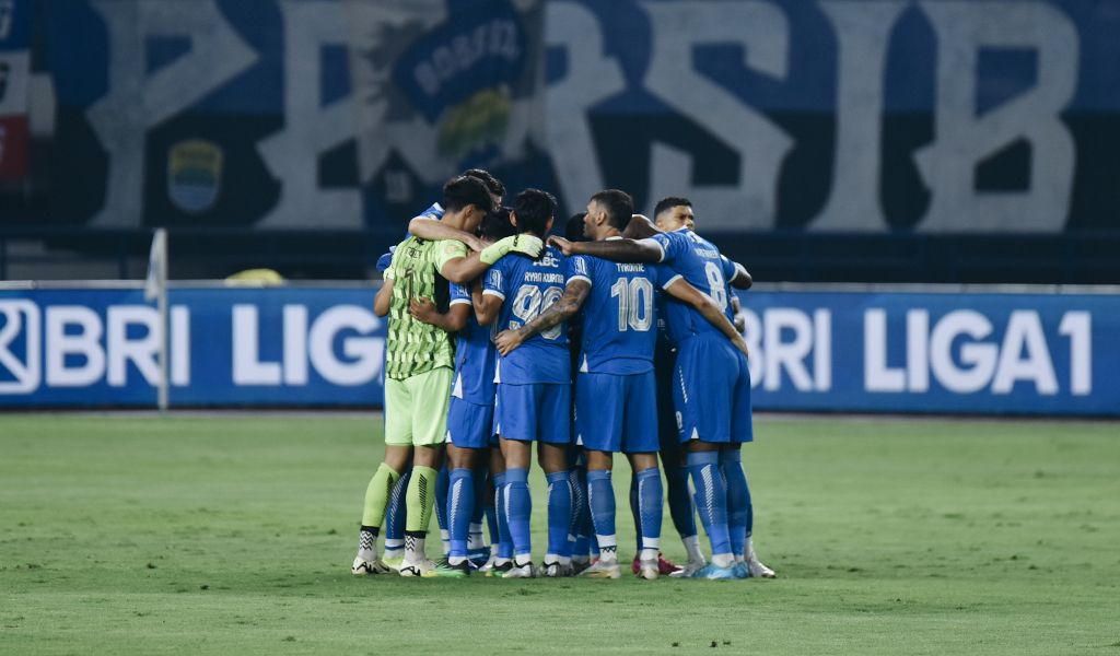 Skuad PERSIB bersatu di lapangan BRI Liga 1, simbol kekompakan menuju standar profesional tanpa catatan di musim 2024/25.