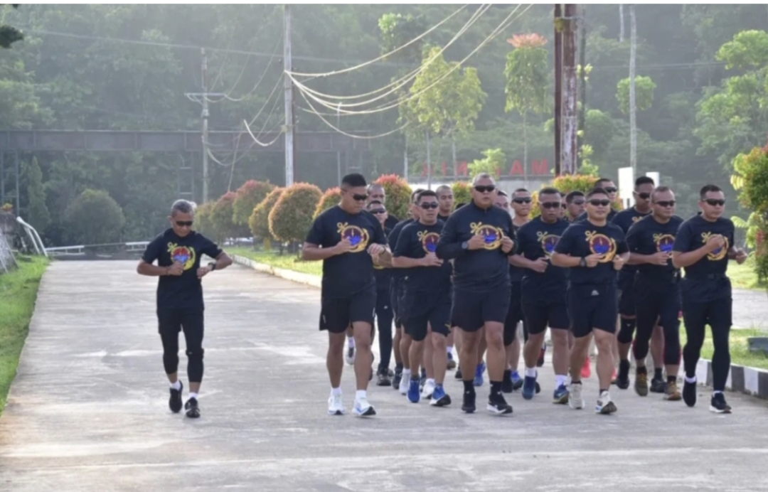 Dengan penuh semangat dan kekompakan, para perwira melaksanakan lari pagi mengelilingi kawasan kesatrian sambil memanfaatkan udara segar waktu fajar sebagai momentum meningkatkan stamina dan kesehatan jasmani.