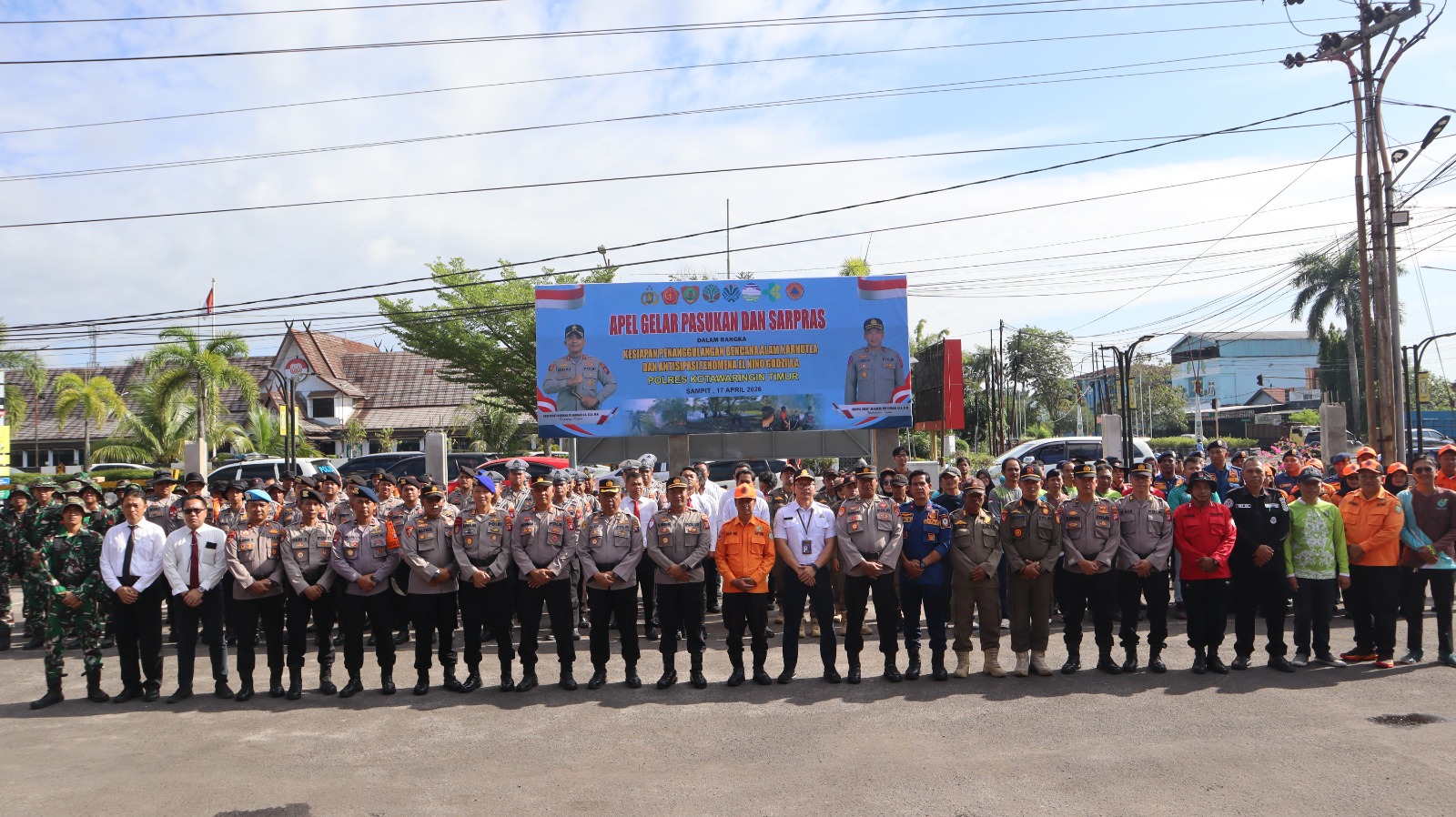 Apel kesiapsiagaan tersebut diikuti personel gabungan dari Polres Kotim, TNI Kodim 1015/Sampit, Brimob Batalyon B Pelopor, BPBD, Basarnas, Manggala Agni, Damkar, BMKG, serta undangan lainnya.