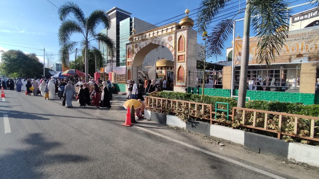 Rangkaian ibadah yang dipimpin oleh imam masjid setempat berlangsung khidmat dan tertib, dengan jumlah jemaah yang hadir diperkirakan mencapai 1.500 orang.