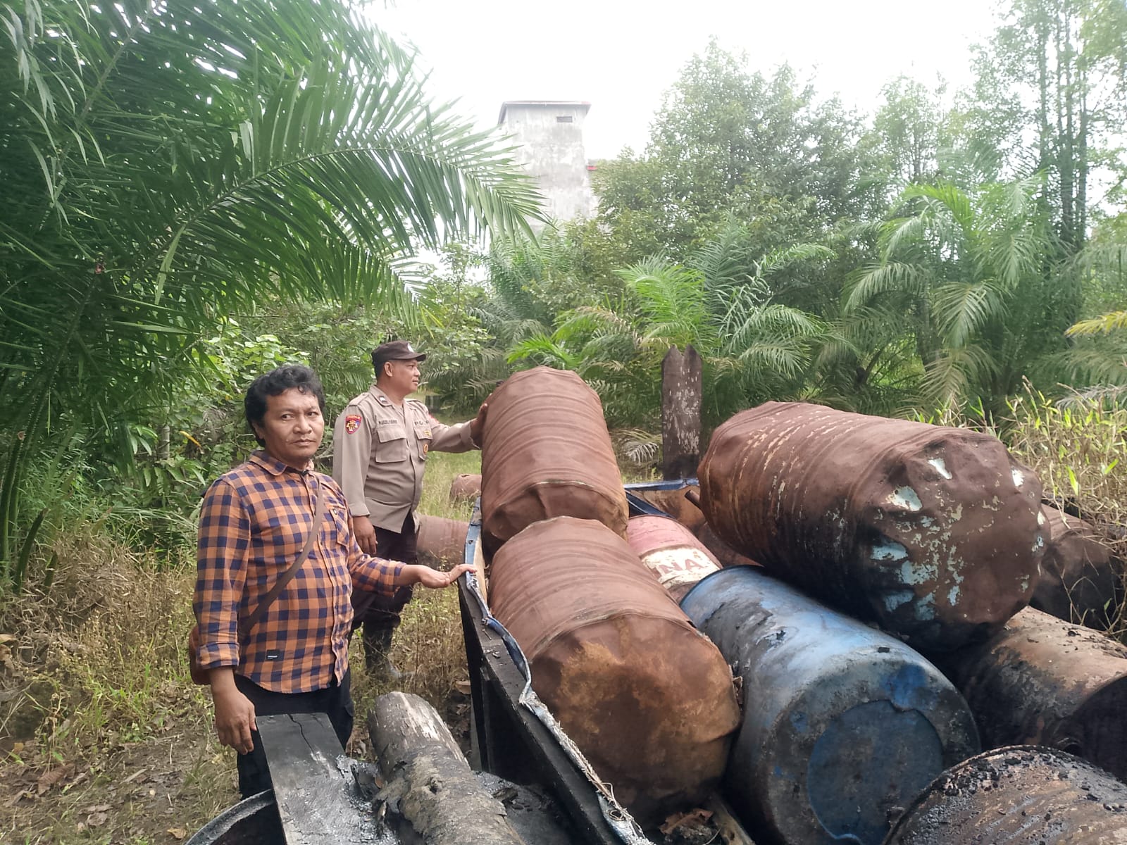 Hasil pengecekan menunjukkan adanya 43 drum kosong, 2 drum berisi CPO beku, 1 profil tank ukuran 1.100 liter kosong, 1 profil tank ukuran 2.200 liter kosong, 2 penampung besi plat berkapasitas sekitar 10.000 liter kosong, dan 1 pondok kayu kosong.