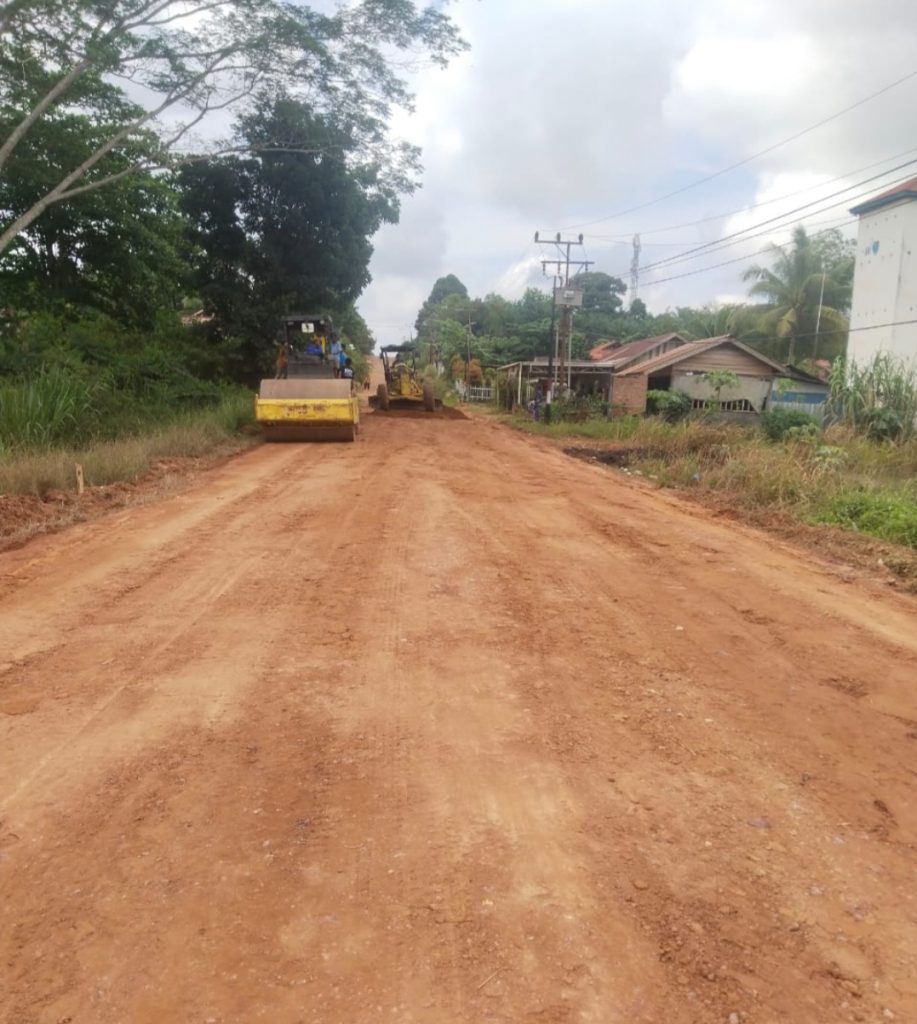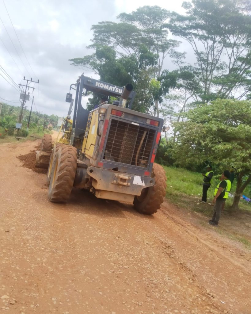 Namun jelas terlihat dari pantauan awak media, ada aktivitas pengerasan jalan dengan campuran koral dan batu latrit yang dihampar dengan alat berat, dan lalu lalang truk dum Fuso mengangkut material.
