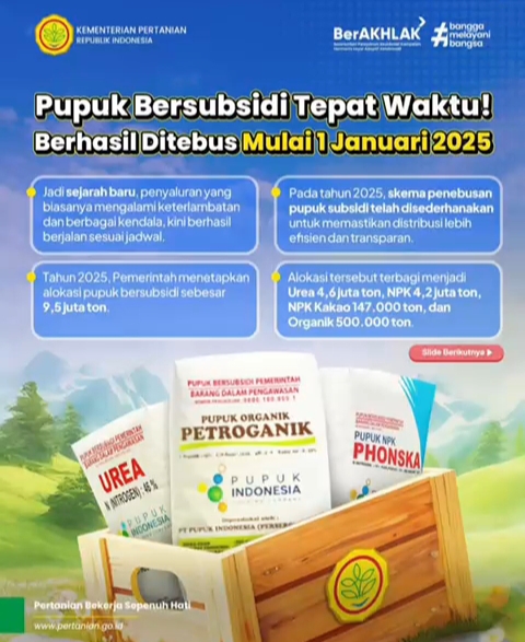Ketersediaan pupuk bersubsidi tepat waktu menjadi bukti keseriusan pemerintah dalam memenuhi kebutuhan petani. Diharapkan, hal ini dapat meningkatkan produktivitas dan mendukung ketahanan pangan.
