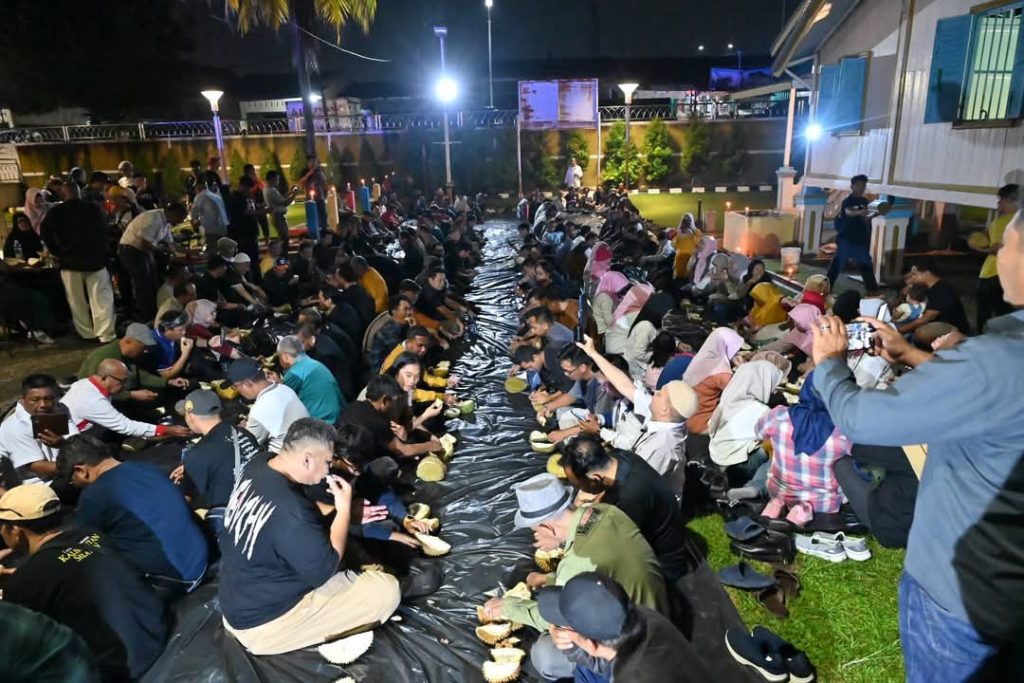 SS NEWS.Pekanbaru Ratusan peserta bersama masyarakat sekitar tumpah ruah mengikuti acara Durian Party PWI yang digelar di Halaman Rumah Singgah Tuan Qadi Pekanbaru, Sabtu (08/02/2025).
