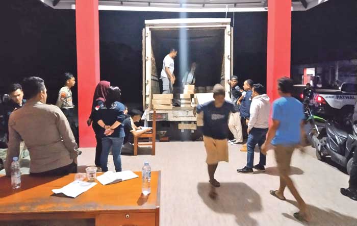 Logistik itu diterima sekitar pukul 02.15 WIB, Jumat (25/10). Surat suara Pilbup Kotim sebanyak 318.028 termasuk tambahan 2,5 persen, ditambah 2.000 surat suara untuk pemilihan suara ulang (PSU) dikirim menggunakan jasa ekspedisi PT Indah Jaya Expres dari Tanjung Priok Jakarta menuju Pelabuhan Trisakti Banjarmasin.