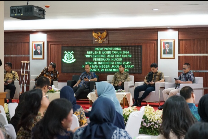 SS.NEWS.Jakarta – Menjelang akhir tahun 2024 Kejaksaan Negeri Jakarta Barat, mengadakan pertemuan dalam kegiatan refleksi rapat paripurna akhir tahun 2024 bersama jajarannya di ruang aula kantor Kejaksaan Negeri Jakarta Barat. di Jalan Kembangan Raya No.1.RT 5 RW 2 Kelurahaan Kembangan Utara Kecamatan Kembangan Jakarta Barat.Jumat 20/12/2024.
