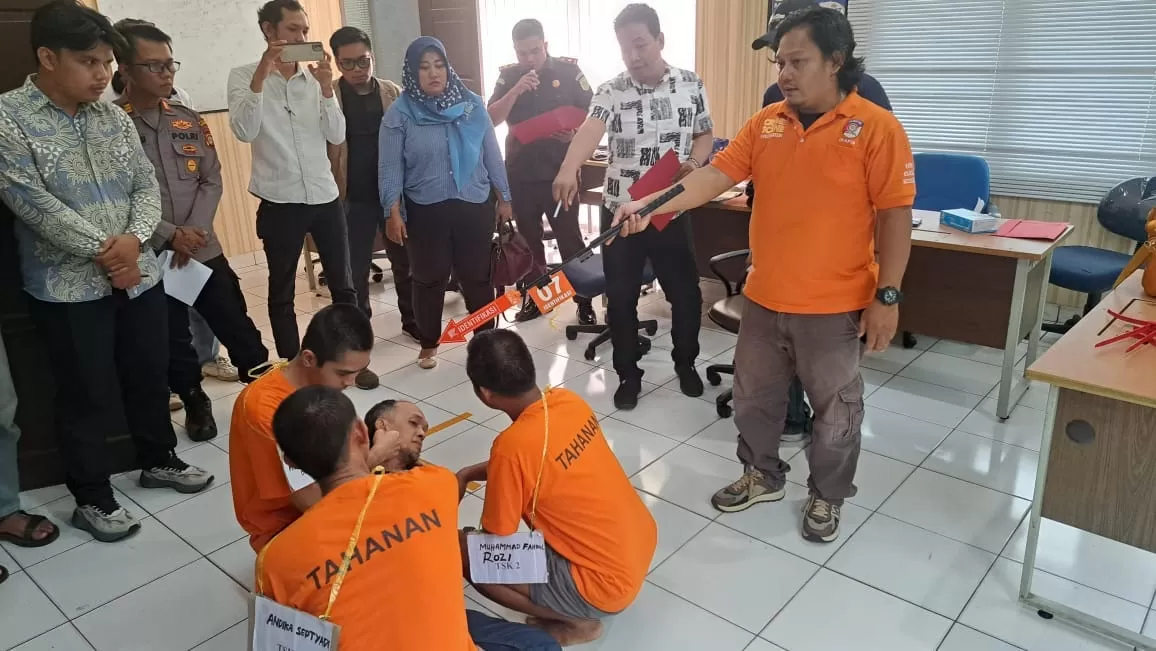 Dalam rekonstruksi, penyidik memaparkan secara detail rangkaian tindakan kejahatan yang dilakukan ketiga tersangka.