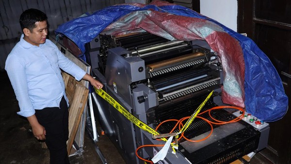 Penampakan mesin pencetak uang palsu yang disita sebagai barang bukti