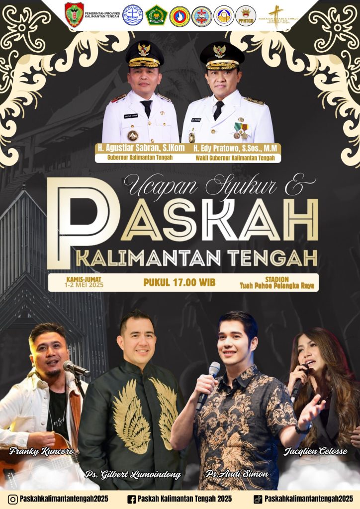 “Mari hadiri ibadah ucapan syukur Paskah Kalteng pada tanggal 1–2 Mei di Stadion Tuah Pahoe. Jemaat diimbau hadir tepat waktu. Pintu stadion akan dibuka mulai pukul 16.30 WIB dan kegiatan akan dimulai pada pukul 17.00 WIB,” tambahnya.