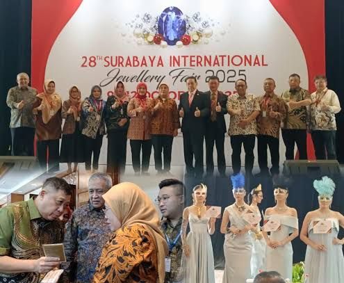 SUPERSEMAR NEWS – Jatim – Pameran perhiasan internasional terbesar di Indonesia, Surabaya International Jewellery Fair 2025 resmi dibuka di Hotel Shangri-La Surabaya, pada 9–12 Oktober 2025. Ajang bergengsi ke-28 ini menampilkan lebih dari 80 peserta, terdiri dari pengusaha swasta, pelaku Industri Kecil dan Menengah (IKM), serta produsen mesin dan perangkat industri perhiasan.