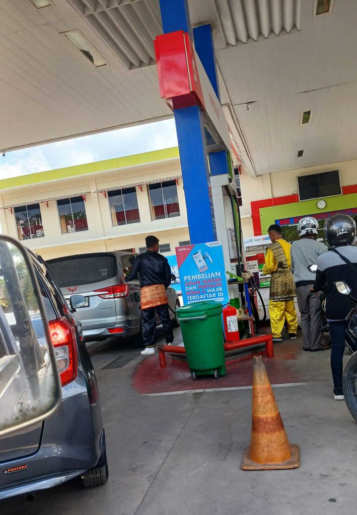Saat dikonfirmasi ke salah satu karyawan SPBU, dengan malu – malu dia menjawab, dan pada saat di ambil dokumentasi foto tidak mau menghadap kamera.