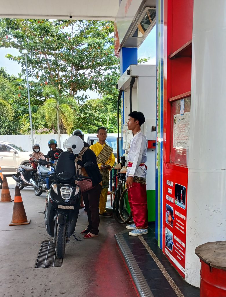 Unik ! Dalam Rangka Memperingati Hari Sumpah Pemuda, Karyawan SPBU MT .Haryono Berkostum Adat