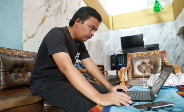 Pekerja muda yang menggugat UU Tapera tampak serius bekerja dari rumah, sambil mengeluhkan potongan gaji untuk iuran Tapera.