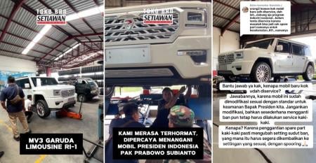 Namun, tidak terlihat pekerjaan berat yang dilakukan oleh para teknisi tersebut saat memeriksa kaki-kaki Maung MV3 Garuda Limousine tersebut.
