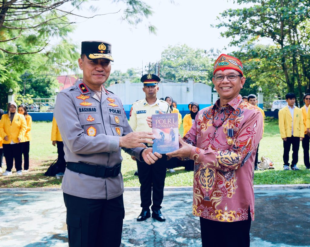Dalam kesempatan tersebut, Wakapol Kalteng juga berkesempatan memberikan buku dengan judul ‘Transformasi Polri dan Asta Cita’, yang diterima langsung oleh Rektor Universitas Palangka Raya, Prof. Dr. Ir. Salampak, M.S.