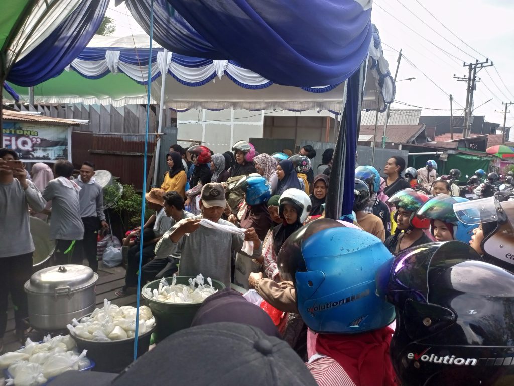 Sebelum pembagian pun antusian para warga sekitar dan para pengendara yang lewat sudah mulai antri untuk menunggu pembagaian bubur asyura tersebut.