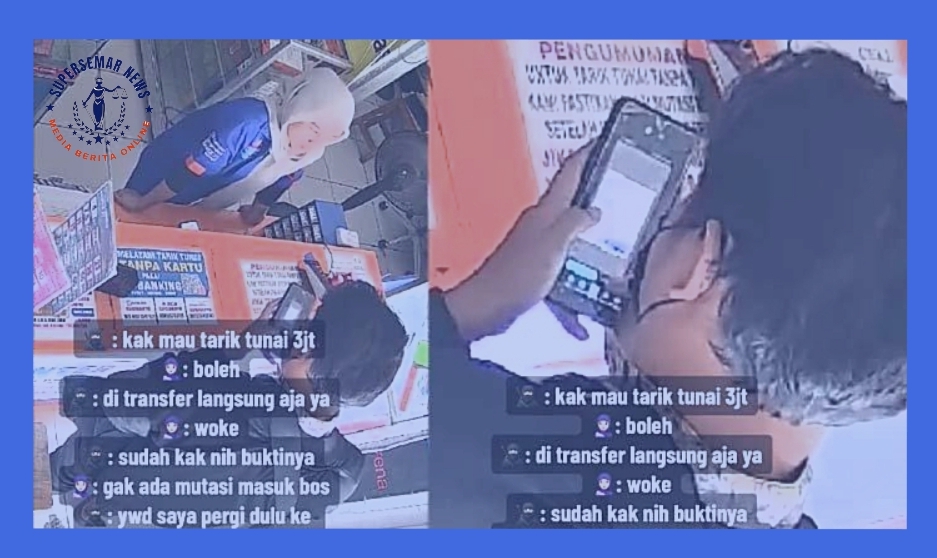 Menunggu beberapa menit, sang pria pun menunjukkan layar ponselnya sebagai bukti sudah transfer ke agen tarik tunai tersebut.