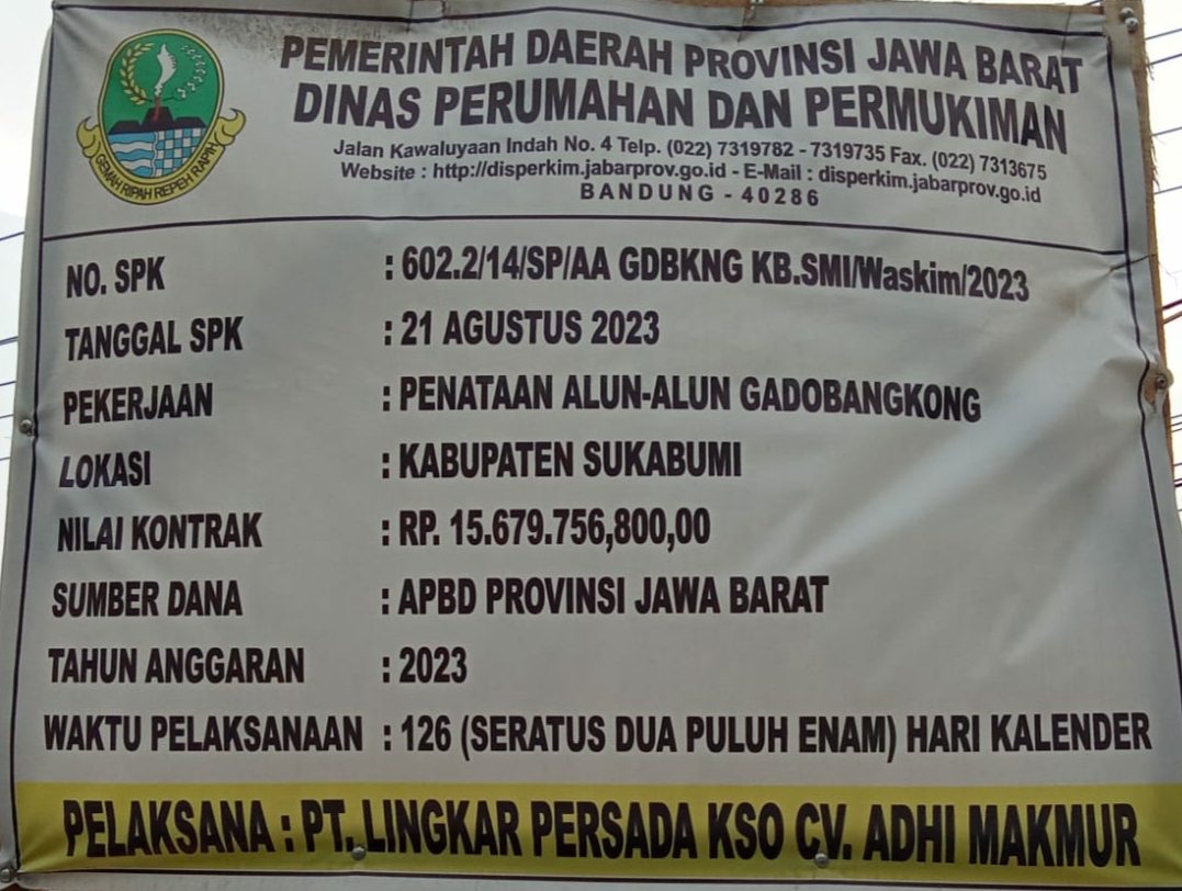 Diketahui proyek pembangunan penataan alun – alun Gadobangkong menghabiskan anggaran senilai Rp.15.679.756.800,00 dengan sumber anggaran APBD provinsi Jawa Barat TA 2023.Namun kini proyek tersebut ramai diperbincangkan.