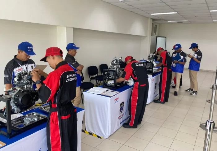 Peserta Indonesia Technician Grand Prix 2025 tengah menjalani uji keterampilan servis motor Yamaha, mencerminkan komitmen Yamaha Technical Academy mencetak teknisi andal.